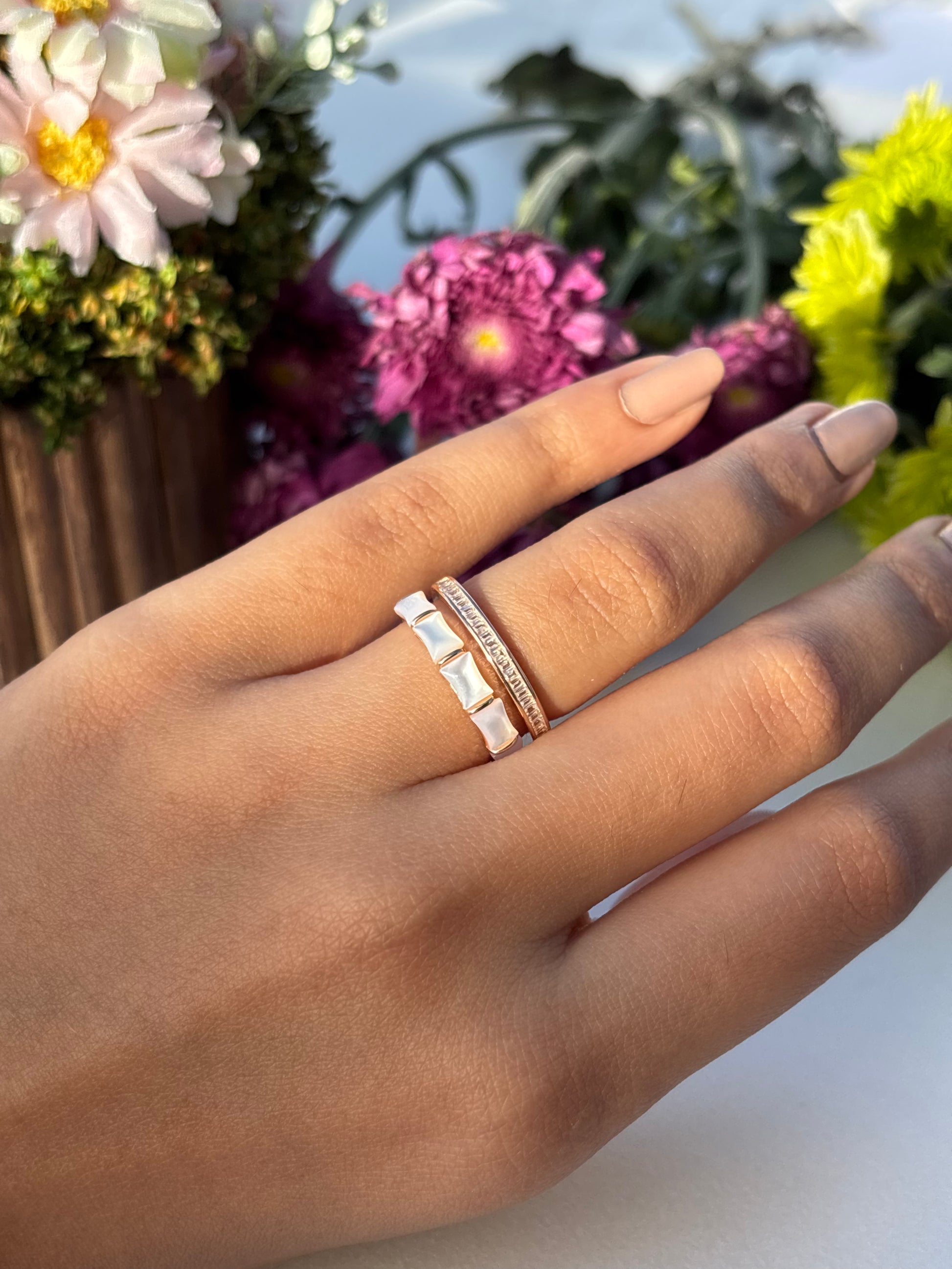 A chic rose gold ring with modern geometric detailing for everyday elegance.