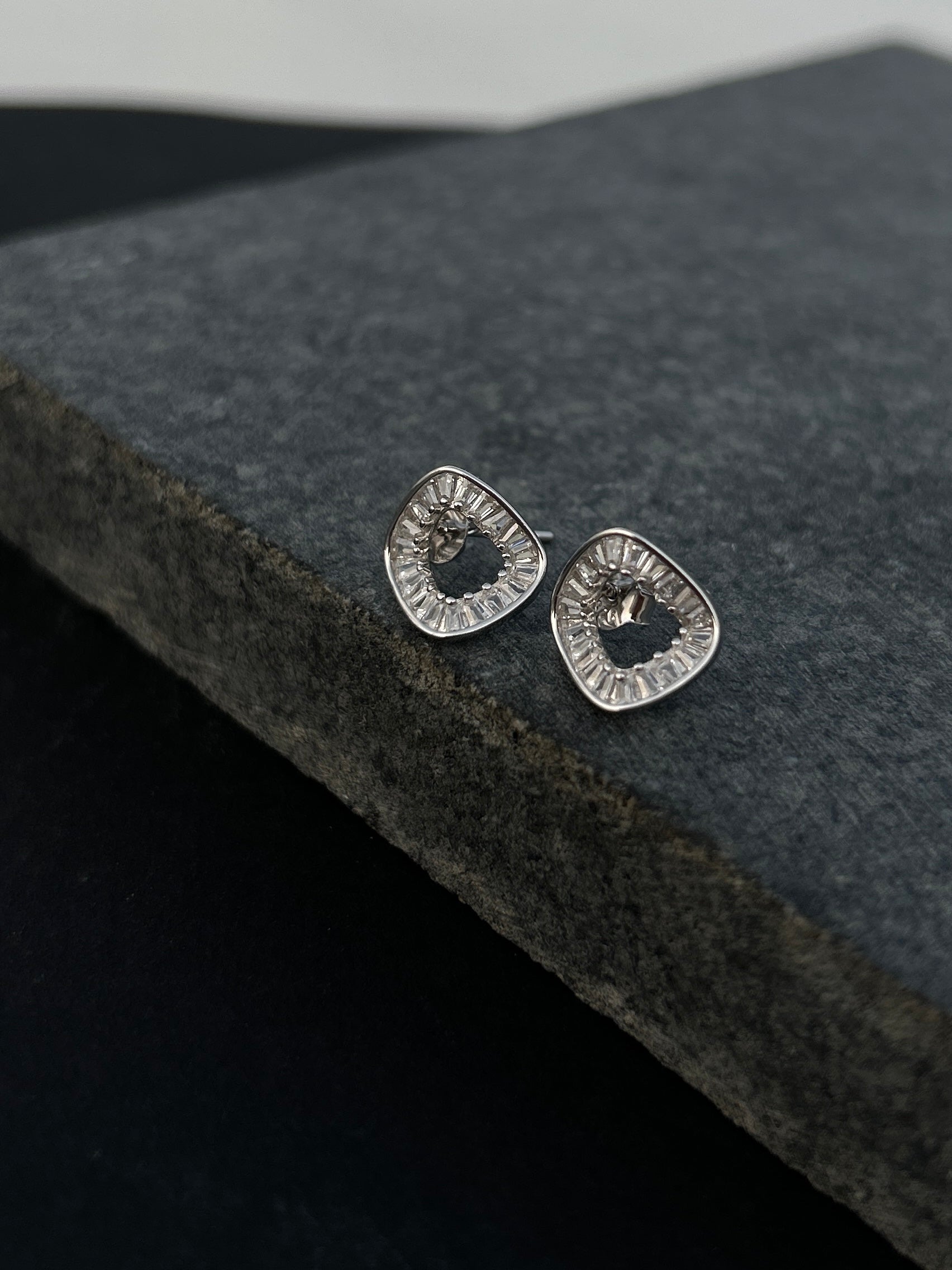 Minimal square-shaped stud earrings crafted in 925 sterling silver with a delicate silver finish, accented with subtle sparkle for effortless everyday elegance.